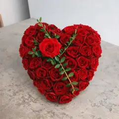 Großes Herz: Herz aus verschiedenen Blumenarten mit Schleife, ca. 45 cm Durchmesser
